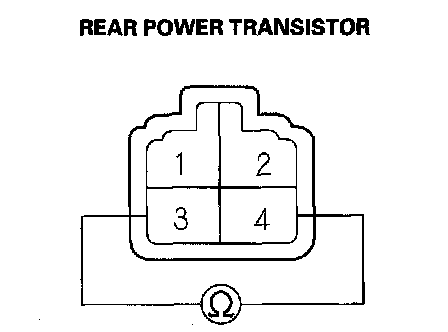 3. Measure the resistance between the No. 3 and No. 4 terminals of the rear power transistor. It should be about 1.5 kOhms.