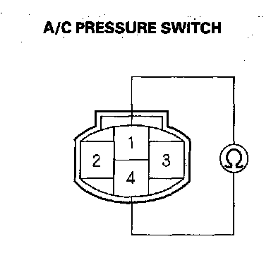 6. Check for continuity between the No. 1 and No. 4 terminals of the A/C pressure switch.