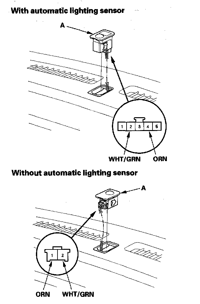 Sunlight Sensor Test1. Remove the sunlight sensor (A) from the dashboard. With automatic lighting sensor