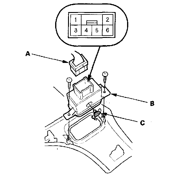2. Disconnect the 6P connector (A) from the interior light switch (B).