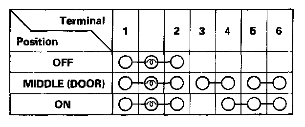 4. Check for continuity between the terminals in each switch position according to the table.