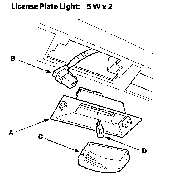 License Plate Light Replacement1. Remove the license plate light (A), and disconnect the 2P connector (B) from the light.
