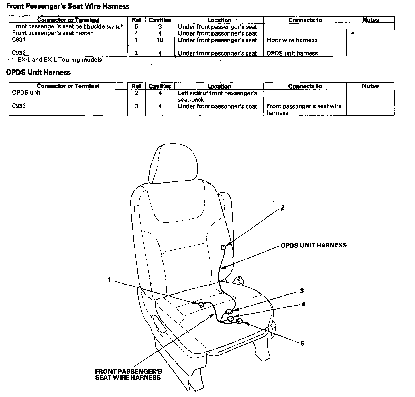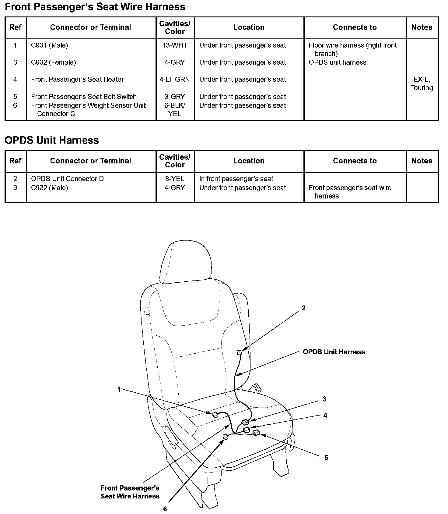 Front Passenger's Seat Wire Harness / OPDS Unit Harness: