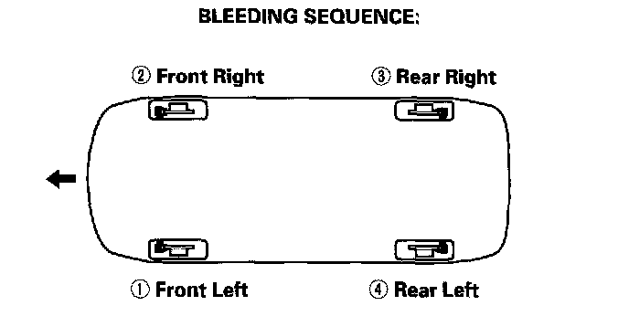 5. Repeat the procedure for each caliper until no air bubbles are in the fluid. Bleed the calipers in the sequence shown.