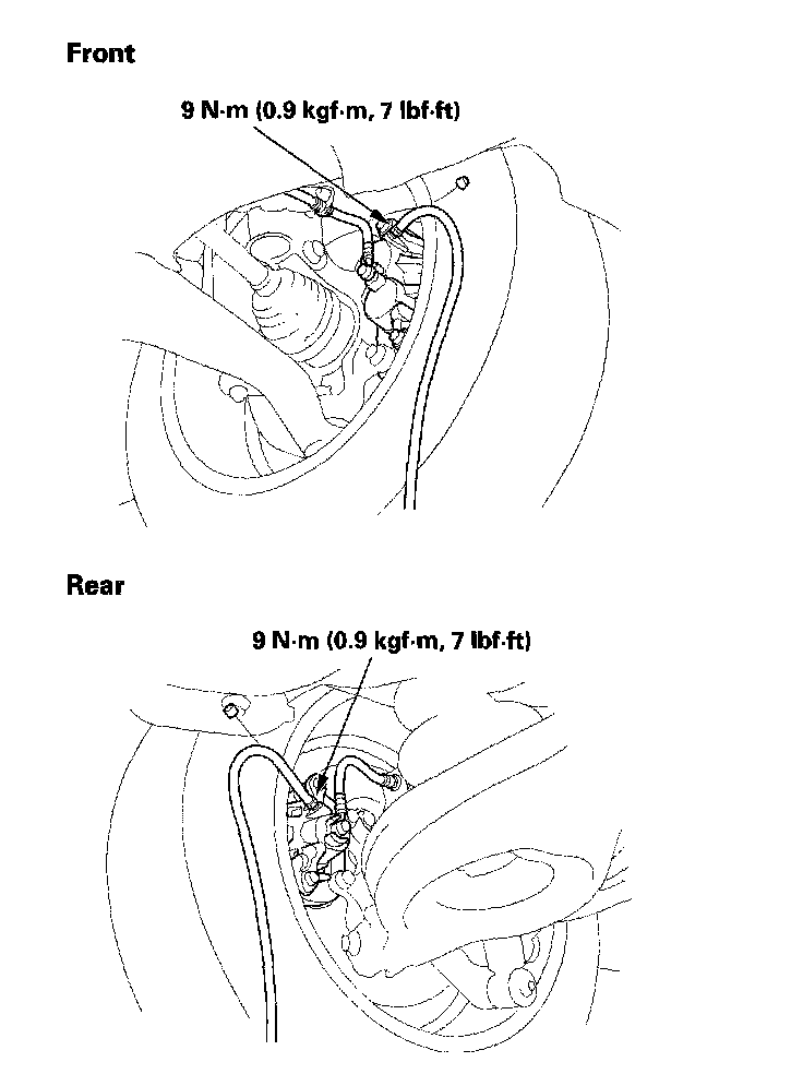 4. Starting at the left front, loosen the brake bleed screw to allow air to escape from the system. Then tighten the bleed screw securely.