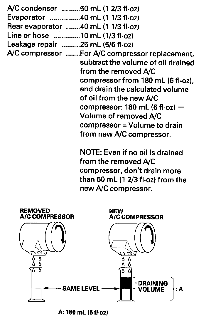 A/C Refrigerant Oil ReplacementRecommended PAG oil: DENSO ND-OIL 8