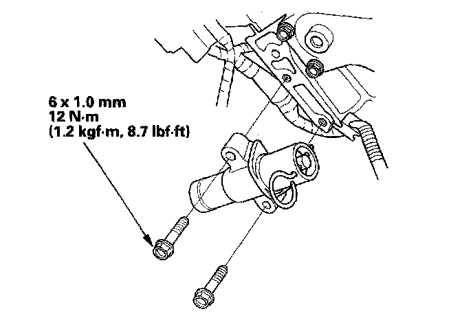 10. Screw the battery clamp bolt in as shown to hold the timing belt adjuster. Tighten it by hand; do not use a wrench.