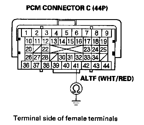 8. Check for continuity between body ground and PCM connector terminal C41.