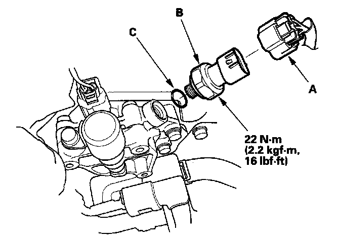 4. Install the EOP sensor in the reverse order of removal with a new O-ring (C).