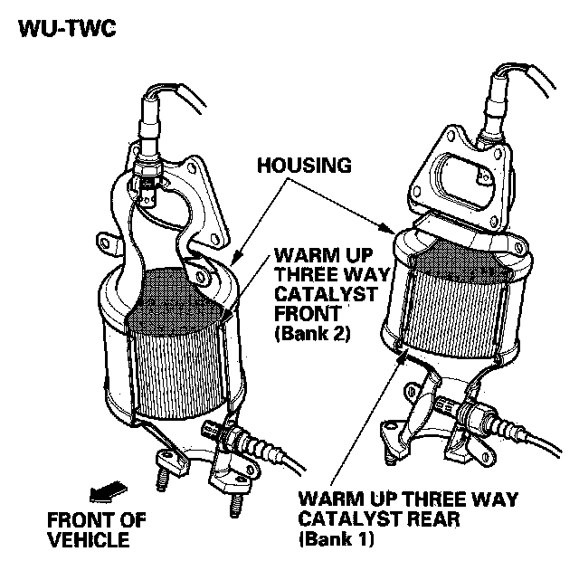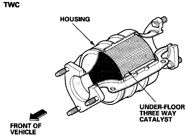 The WU-TWC/TWC converts hydrocarbons (HC), carbon monoxide (CO), and oxides of nitrogen (NOx) in the exhaust gas to carbon dioxide (CO2), nitrogen (N2), and water vapor.