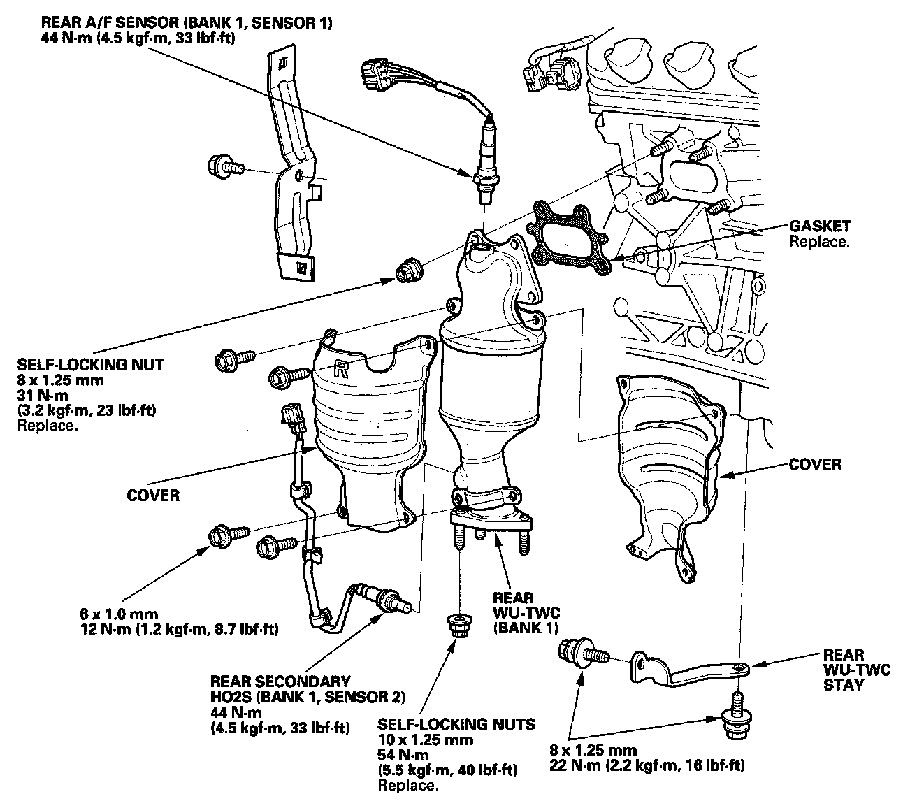6. Install the rear WU-TWC (bank 1), and tighten the nuts in a crisscross pattern in two or three steps.