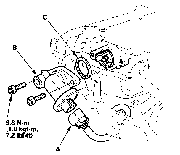 4. Install the actuator in the reverse order of removal with a new O-ring (C).