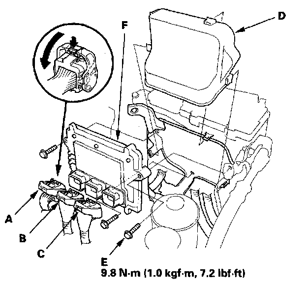 NOTE: PCM connectors A, B, and C have symbols (A=[], B=/\, C=O) embossed on them for identification.