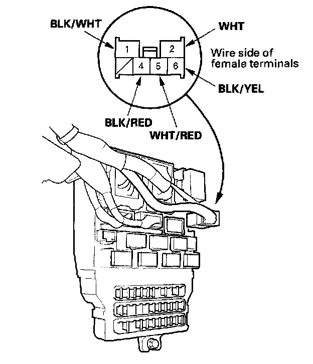 4. Disconnect the 6P connector from the driver's under-dash fuse/relay box.