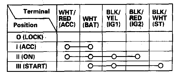 6. If the continuity checks do not agree with the table, replace the steering lock/switch.