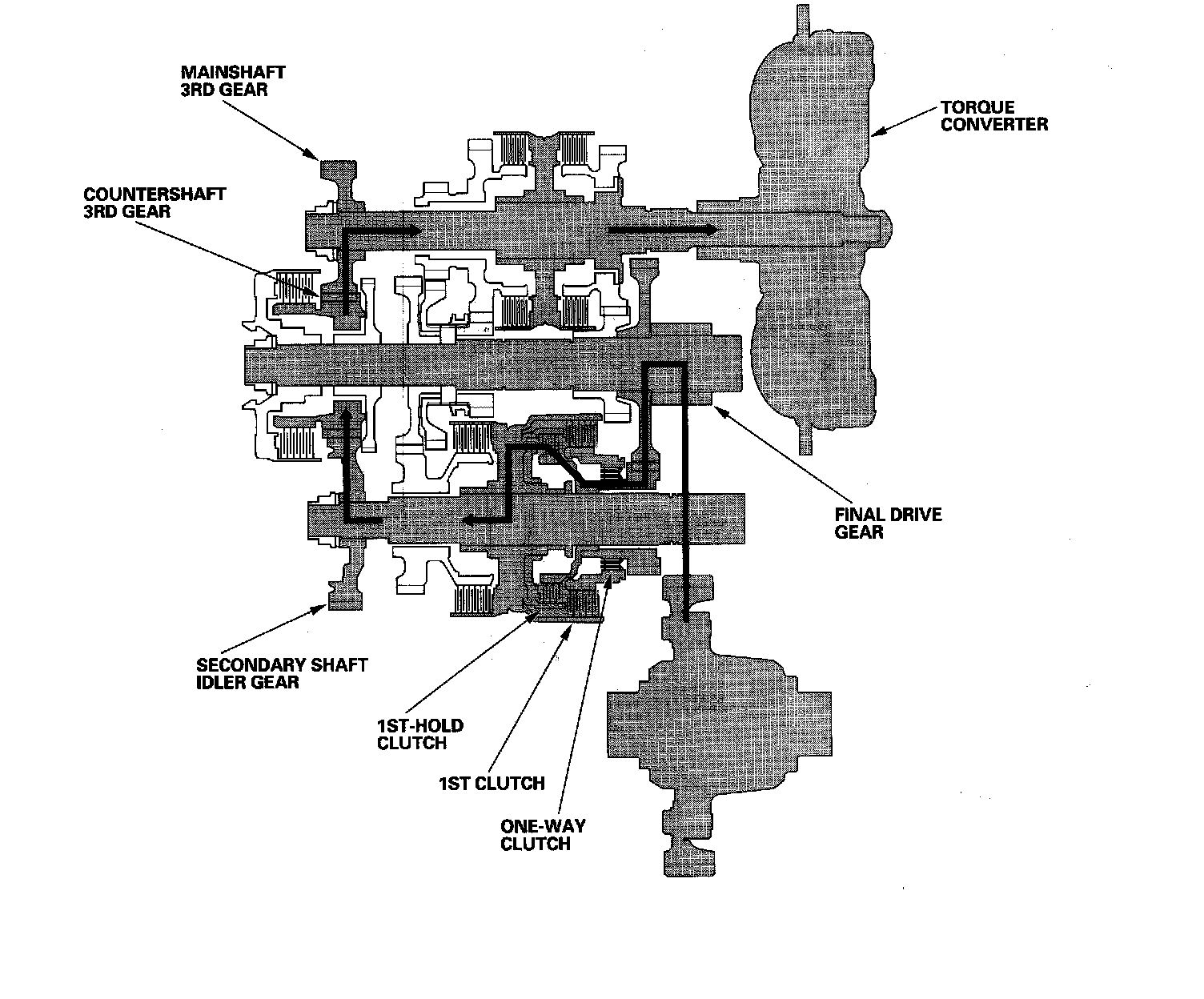^ Hydraulic pressure is also applied to the 1st-hold clutch, and the 1st-hold clutch engages the secondary shaft 1st gear with the secondary shaft.