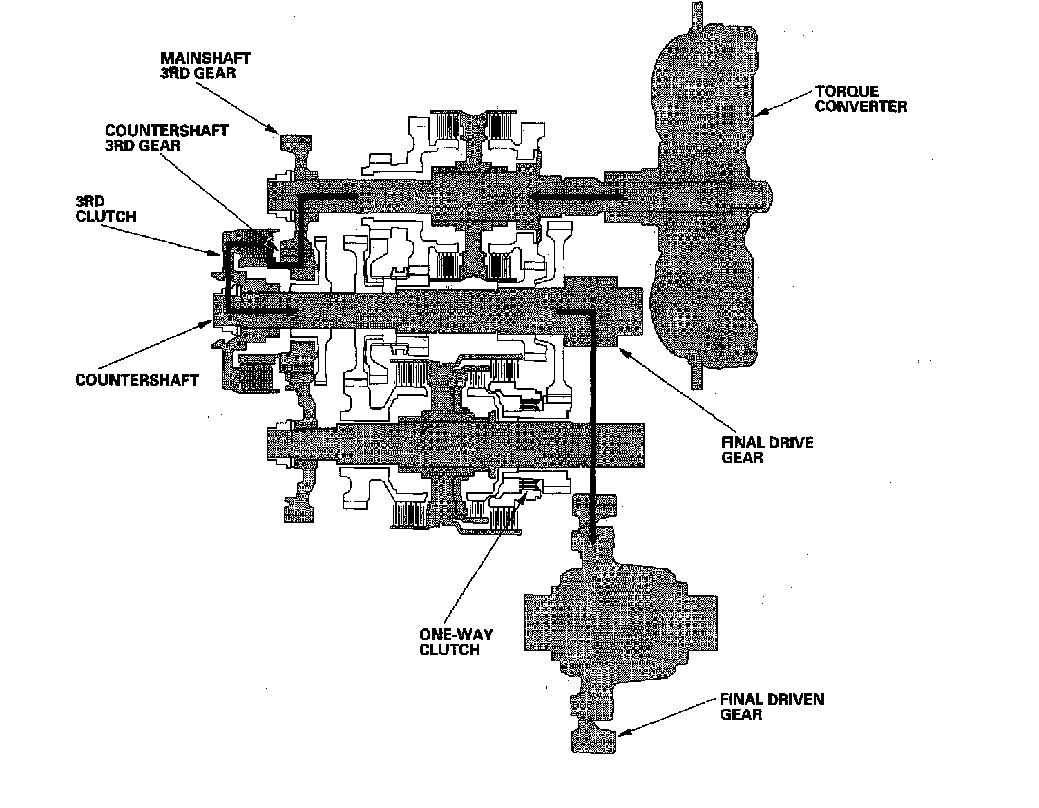 ^ Hydraulic pressure is applied to the 3rd clutch, then 3rd clutch engages the countershaft 3rd gear with the countershaft.
