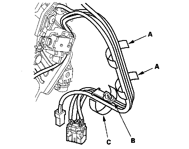 8. Tie the harnesses together into bundles with new tape (A) in two places.