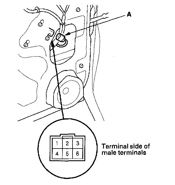 2. Disconnect the 6P connector (A) from the window motor.