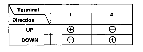 3. Test the motor in each direction by connecting battery power and ground according to the table. When the motor stops running, disconnect one lead immediately.
