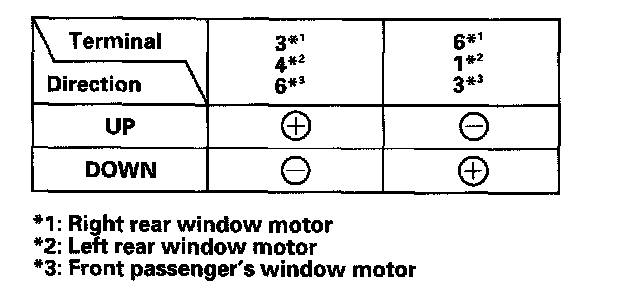 3. Test the motor by connecting battery power and ground according to the table. When the motor stops running, disconnect one lead immediately.
