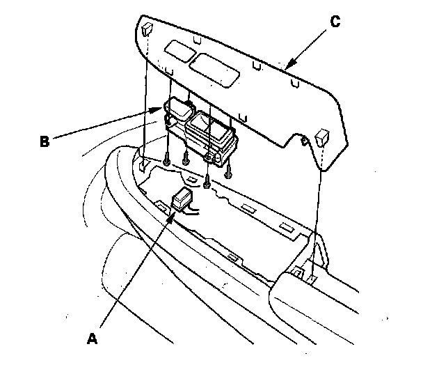 3. Remove the four mounting screws, then remove the power window switch from the switch panel (C).