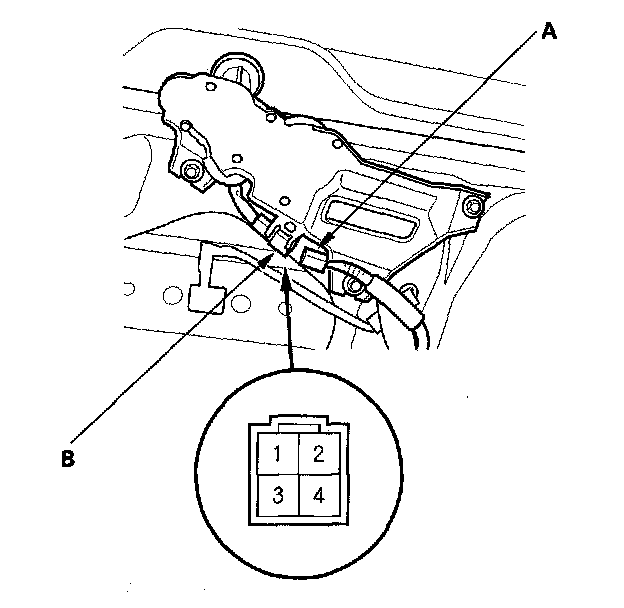 2. Disconnect the 4P connector (A) from the motor (B).