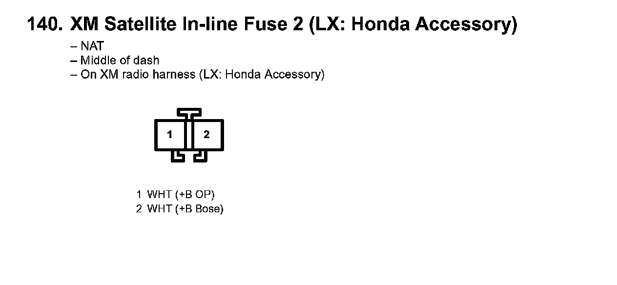 140. XM Sattellite In-line Fuse 2 (LX: Honda Accessory):