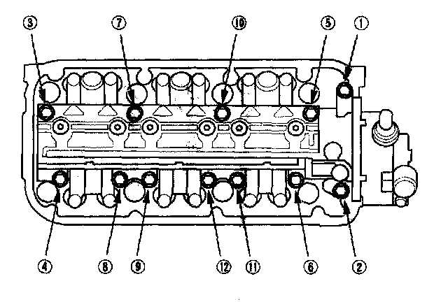 - 1 Unscrew the rocker shaft bridge mounting bolts and rocker shaft holder mounting bolts two turns at a time, to prevent damaging the valves or rocker arm assembly.