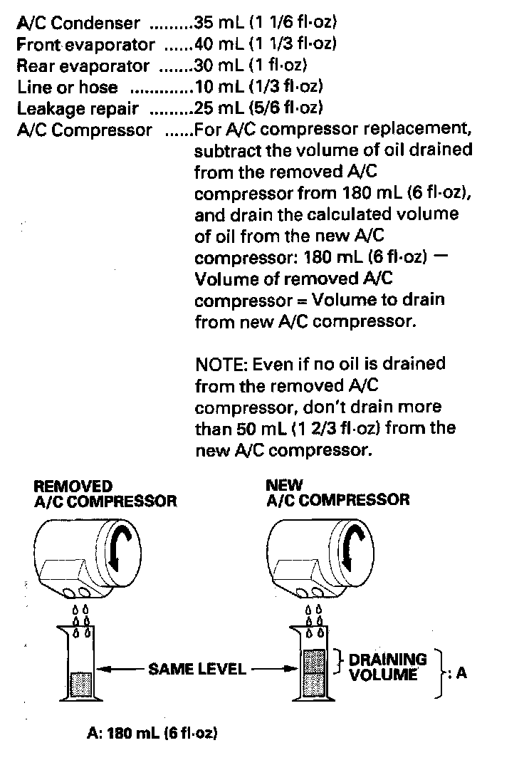 A/C Refrigerant Oil ReplacementRecommended PAG oil: DEN3O ND-OIL 8