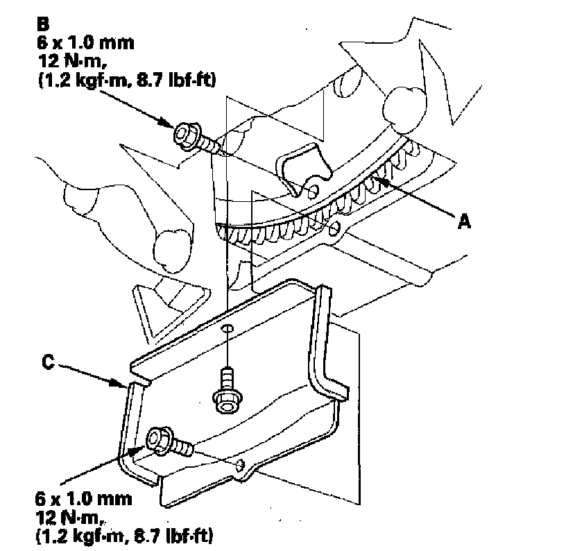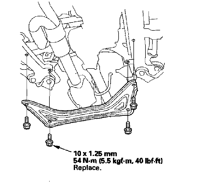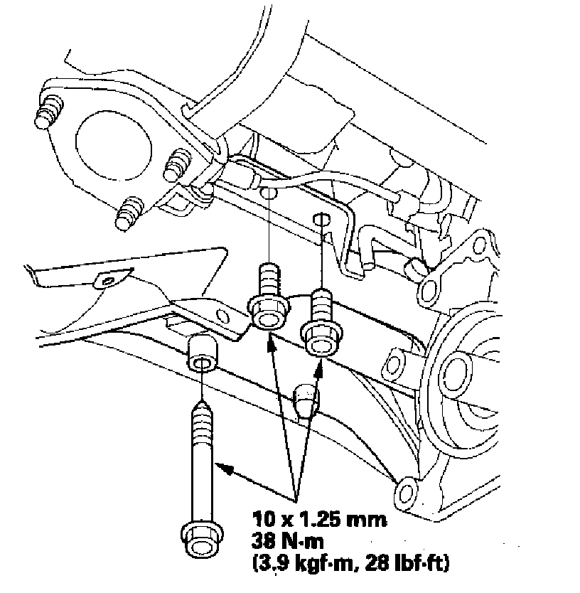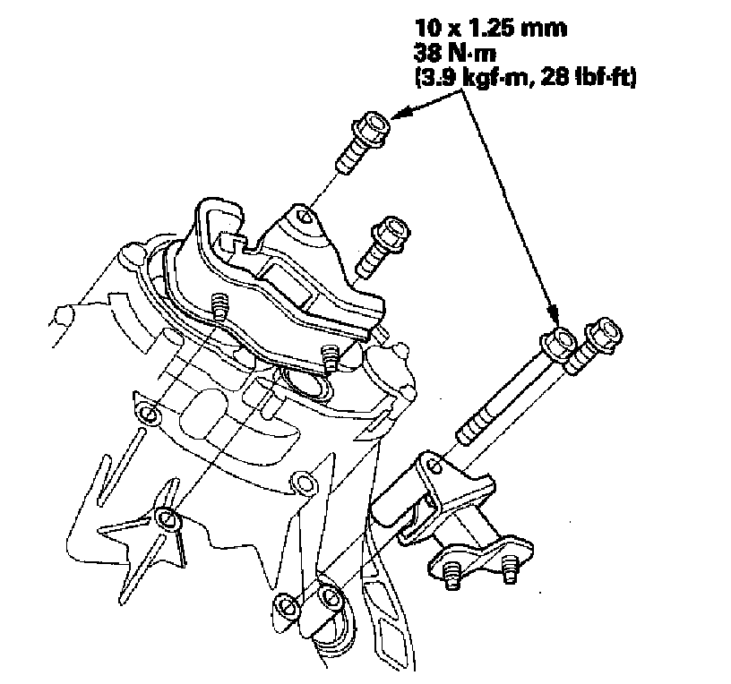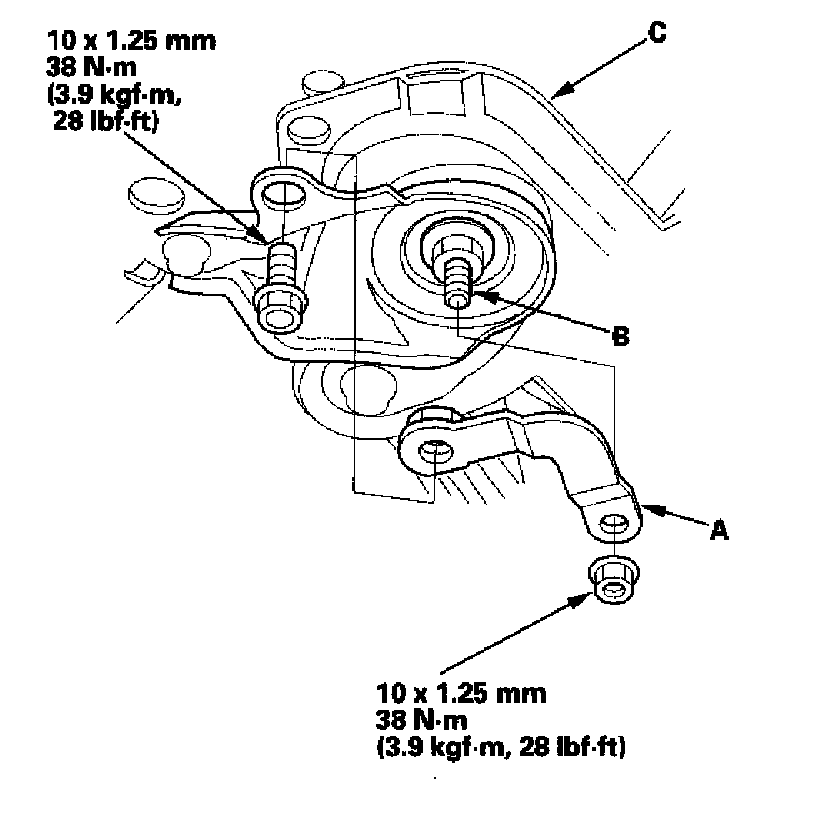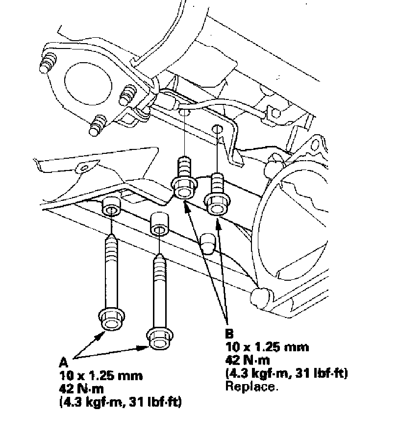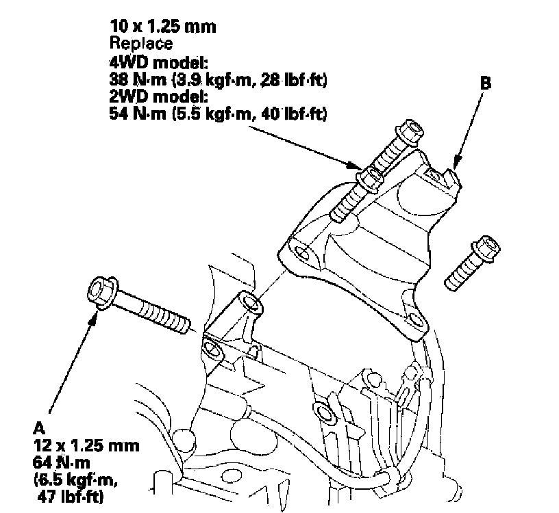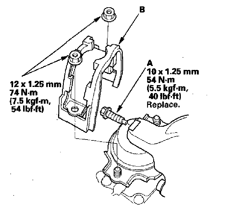 10. Install the front mount bracket (B) with the new mounting bolts.