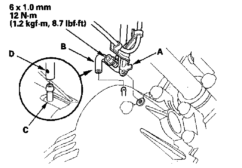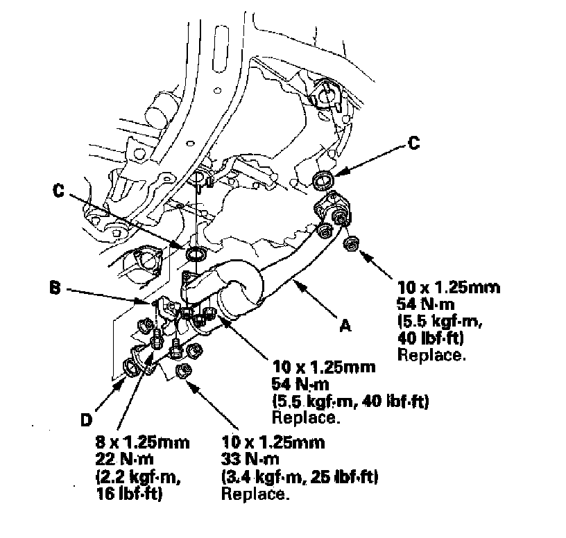 12. Install the exhaust manifold bracket (C) and heat shield (D).