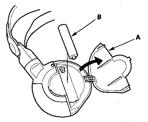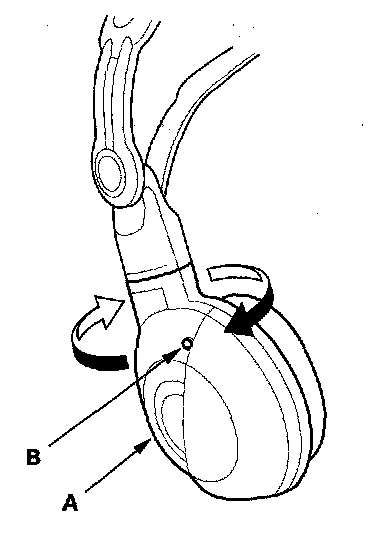 2. Remove the battery (B) from the wireless headphone.