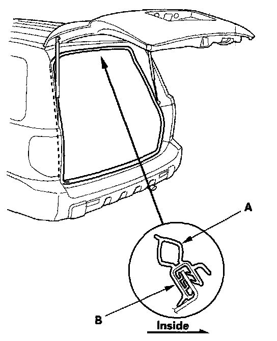 Tailgate Weatherstrip Replacement1. Remove the tailgate weatherstrip (A) by pulling out on it.