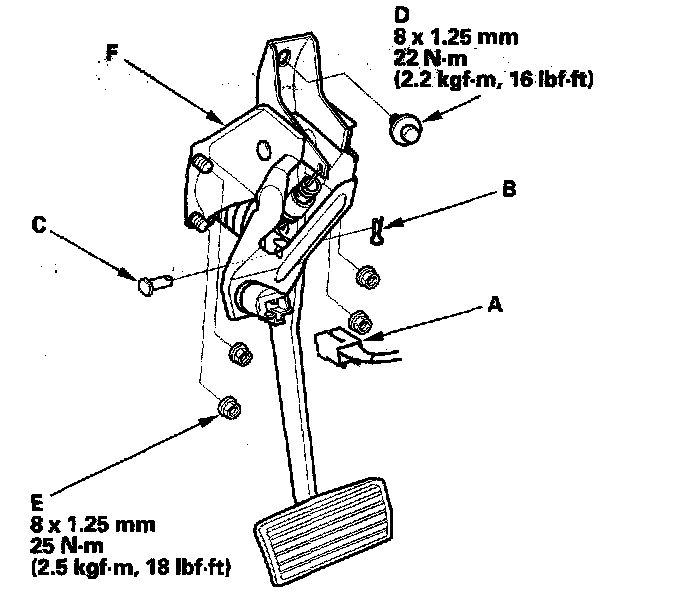 4. Remove the brake pedal with bracket (F).