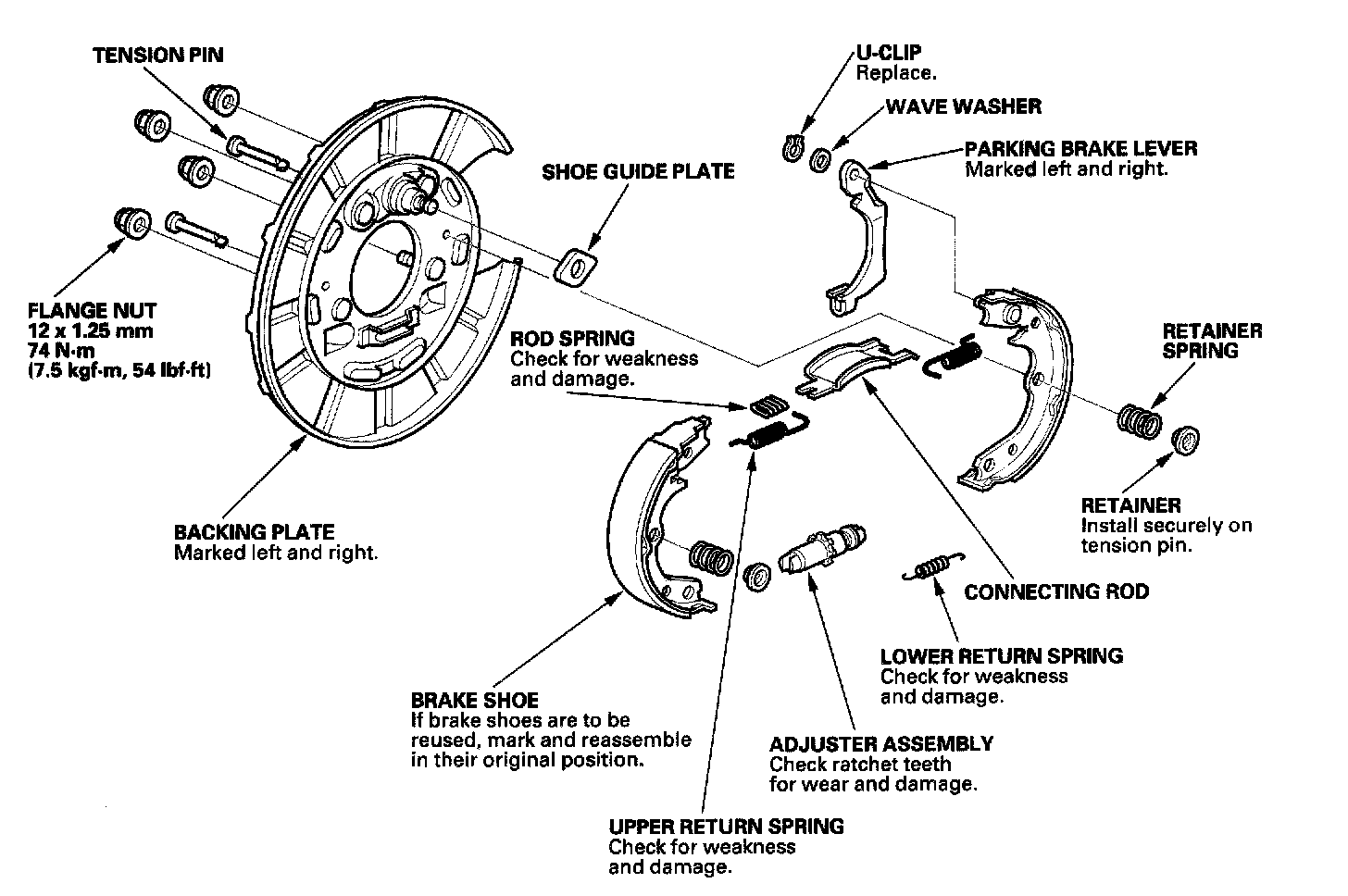 8. If the inside diameter of the parking brake drum is more than service limit, replace the brake disc/drum.
