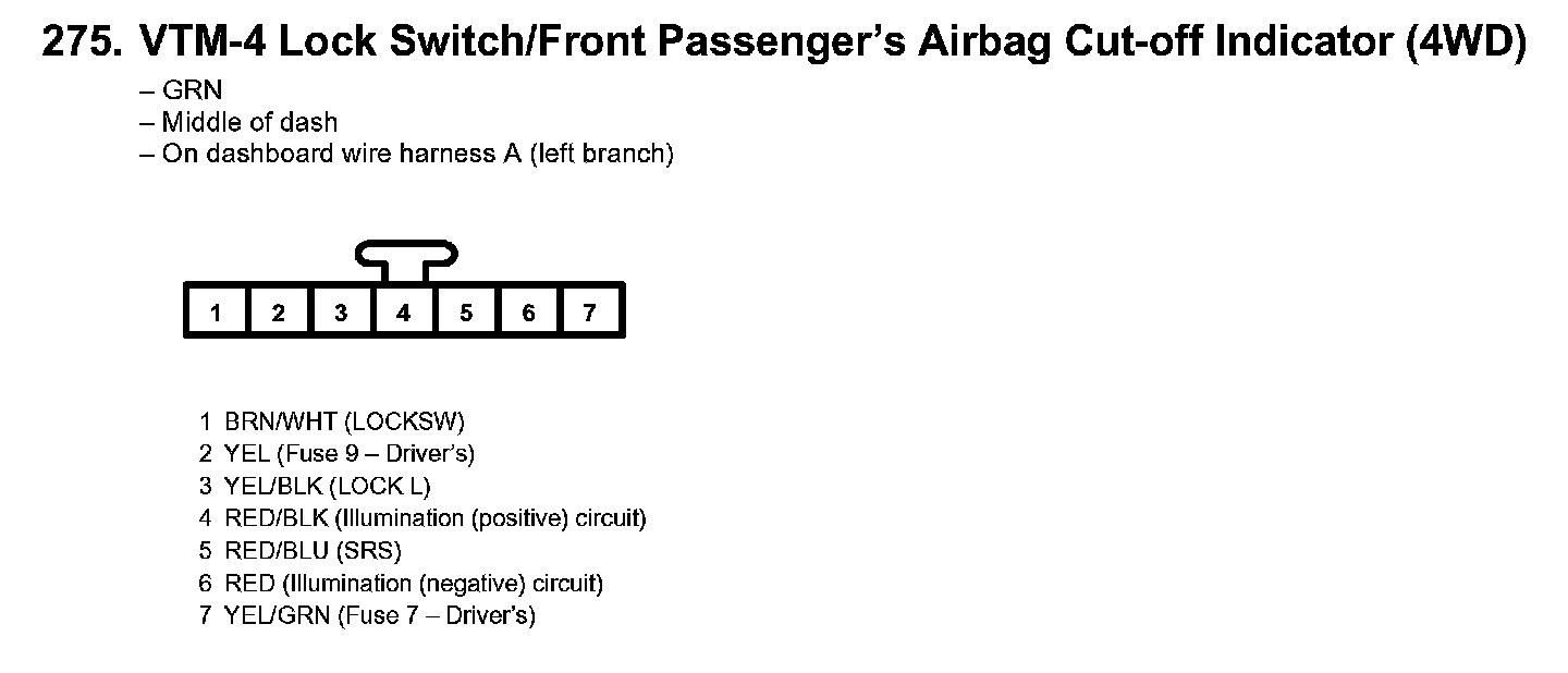 275. VTM-4 Lock Switch/Front Passenger's Airbag Cut-off Indicator (4WD):