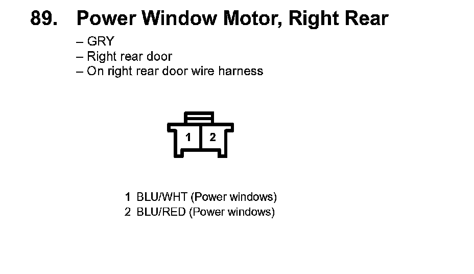 89. Power Window Motor, Right Rear: