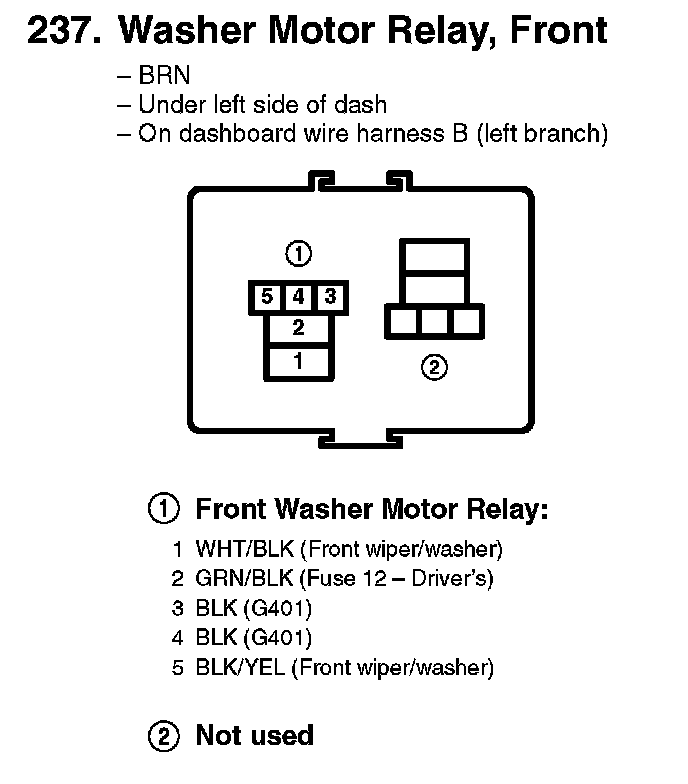 237. Washer Motor Relay, Front: