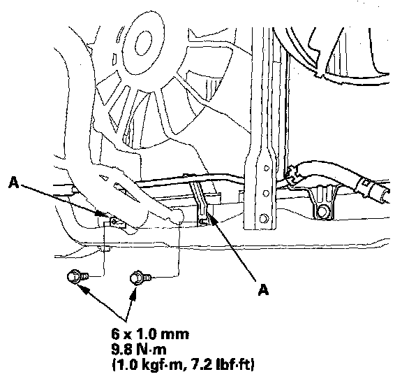 6. Remove the bolts from the cooler line brackets (A).