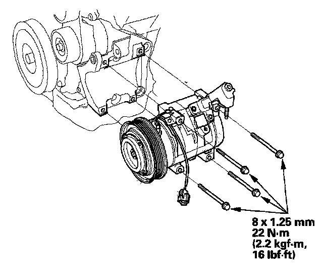 10. Install the A/C compressor in the reverse order of removal, and note these items: