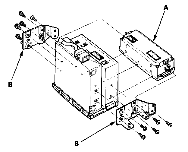 3. Remove the screws and the climate control unit (A) from the brackets (B).