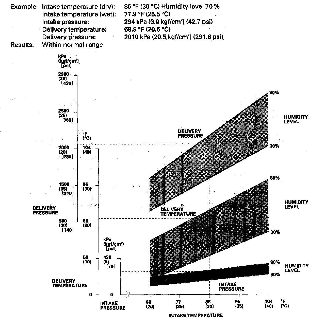 - Mark the intake temperature (ambient air temperature) along the bottom line.