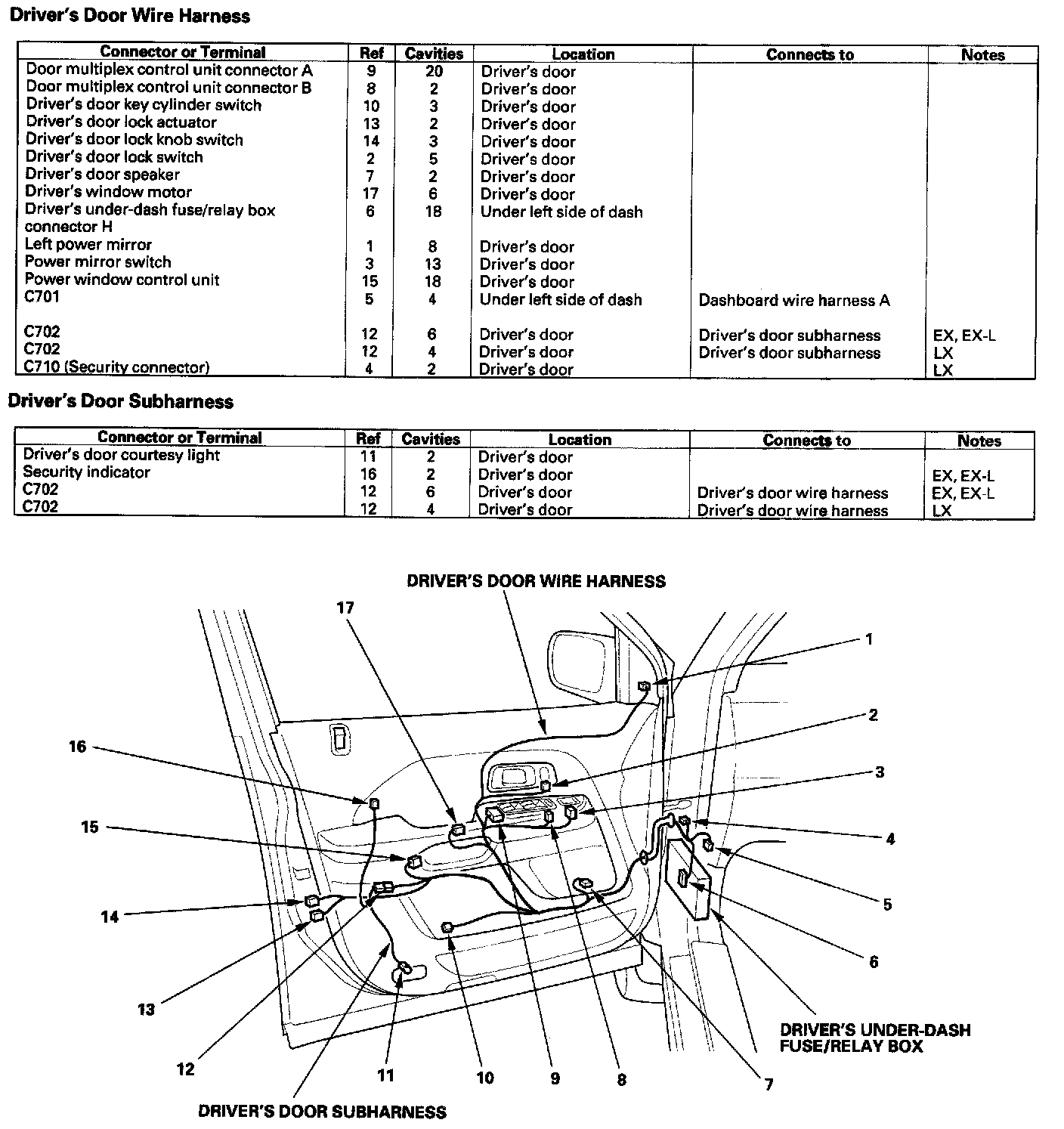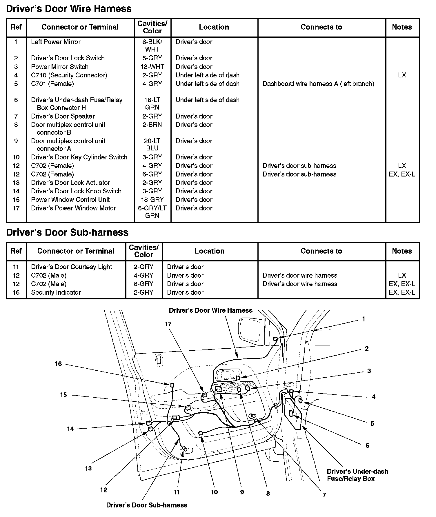 Driver's Door Wire Harness/Driver's Door Sub-harness: