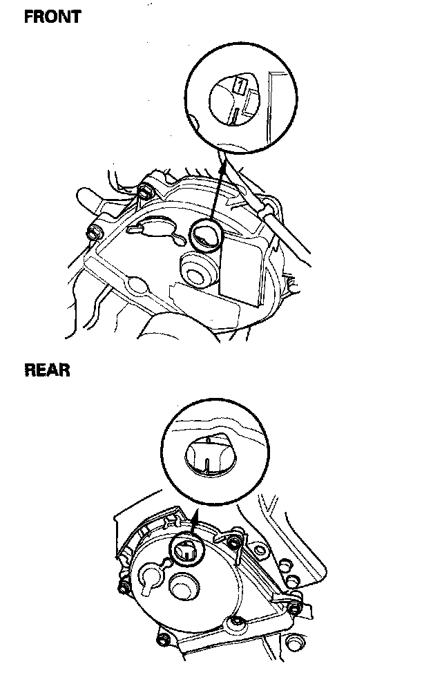3. Set the camshaft pulleys to TDC by aligning the TDC marks (A) on the camshaft pulleys with the pointers (B) on the back covers.