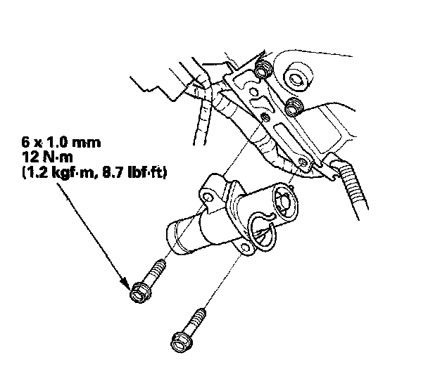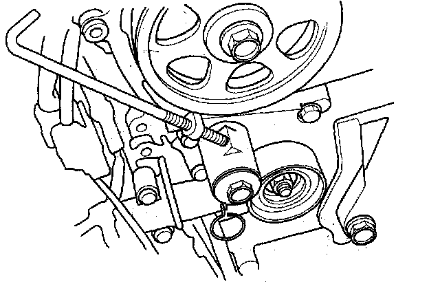 10. Screw the battery clamp bolt in as shown to hold the timing belt adjuster. Tighten it by hand; do not use a wrench.