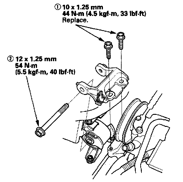 24. Install the upper half of the side engine mount bracket, then tighten the mounting bolts in the numbered sequence shown.