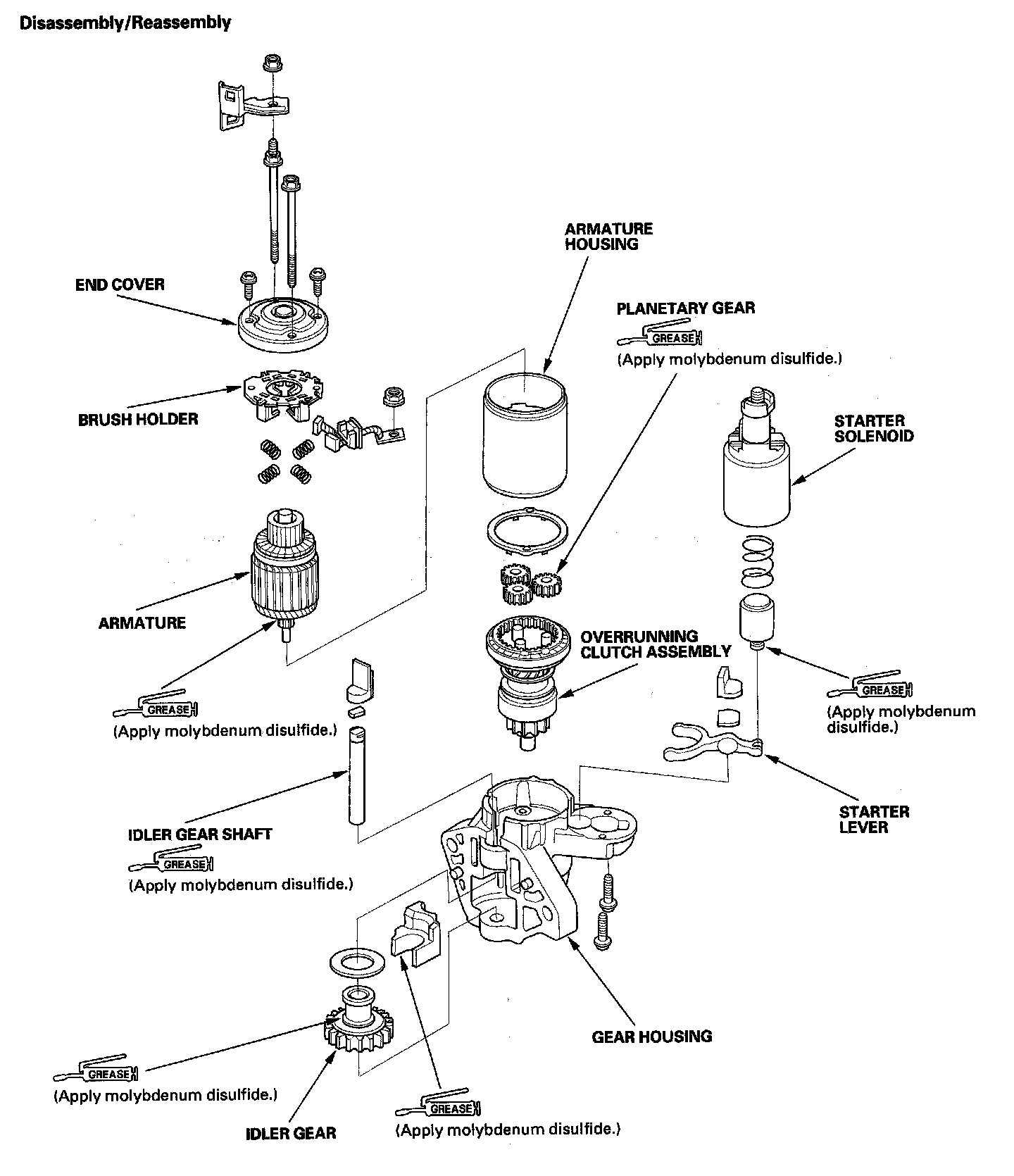 5. Disassemble the starter as shown at the beginning of this procedure.