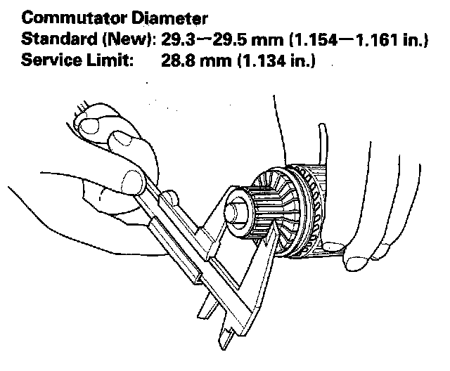8. Check the commutator diameter. If the diameter is out of the service limit, replace the armature.