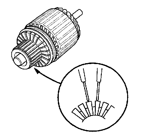 11. Check for continuity between the segments of the commutator. If there is an open circuit between any segments, replace the armature.